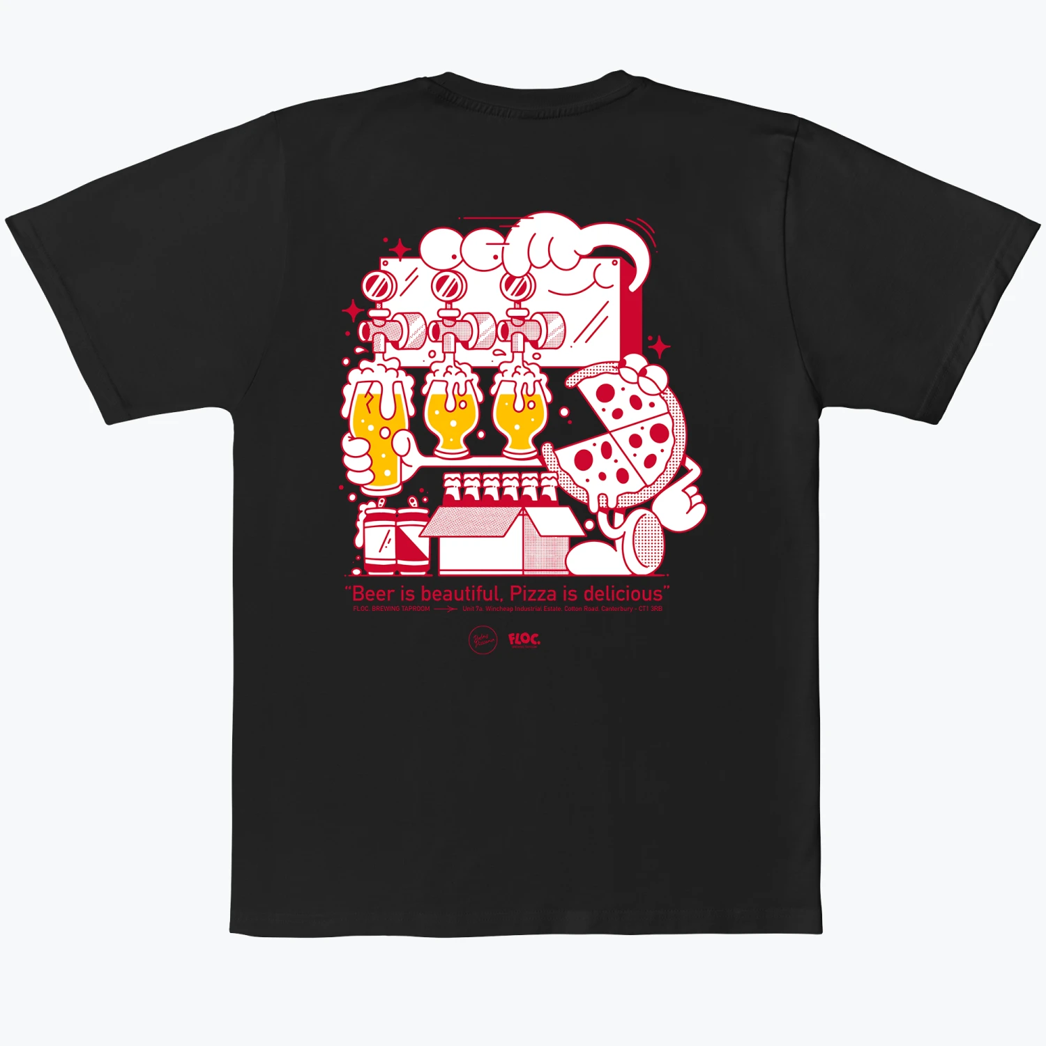Fresh designs for our new home at Floc Brewing in Canterbury, by the one and only Fizzy Wizzy.The Everpress Blank T-shirt is crafted from breathable, durable 200gsm organic cotton; the thickest we offer. Cut to a box shape, they finish at the hip and fit true to size. Available in both white and black, the cotton is combed during production to ensure minimal shrinkage and long-lasting colour. The garments are produced ethically at an independently monitored factory in Cairo.