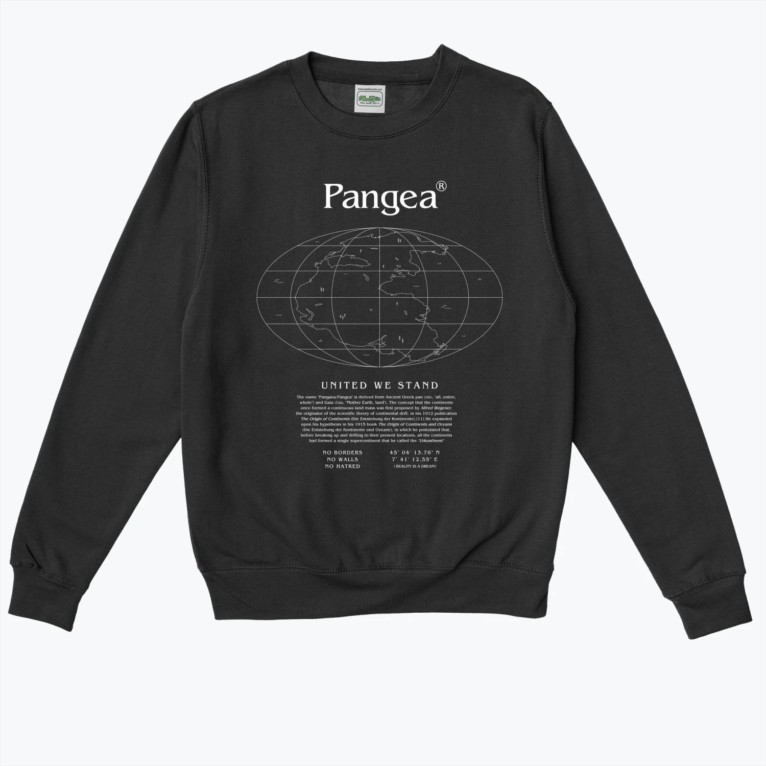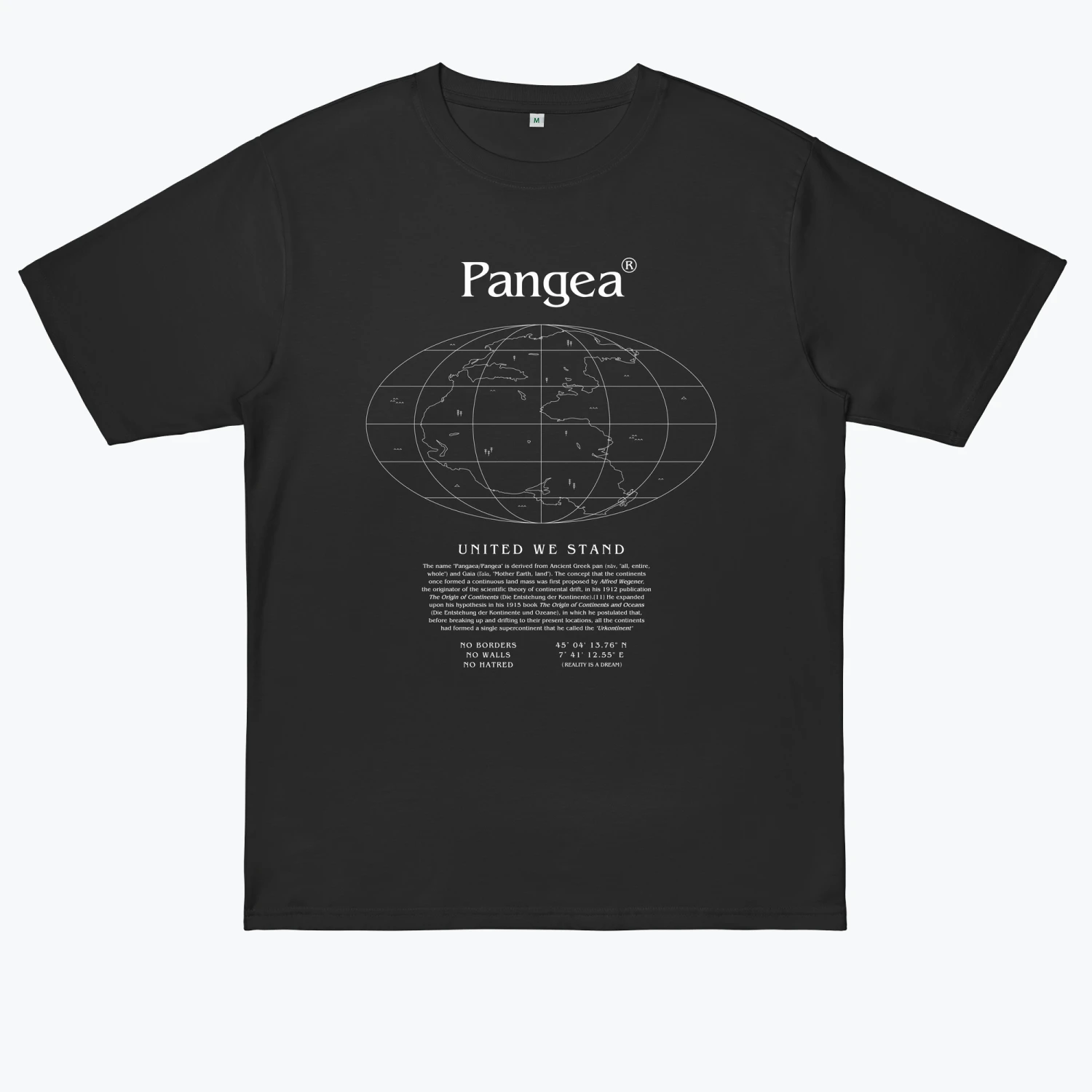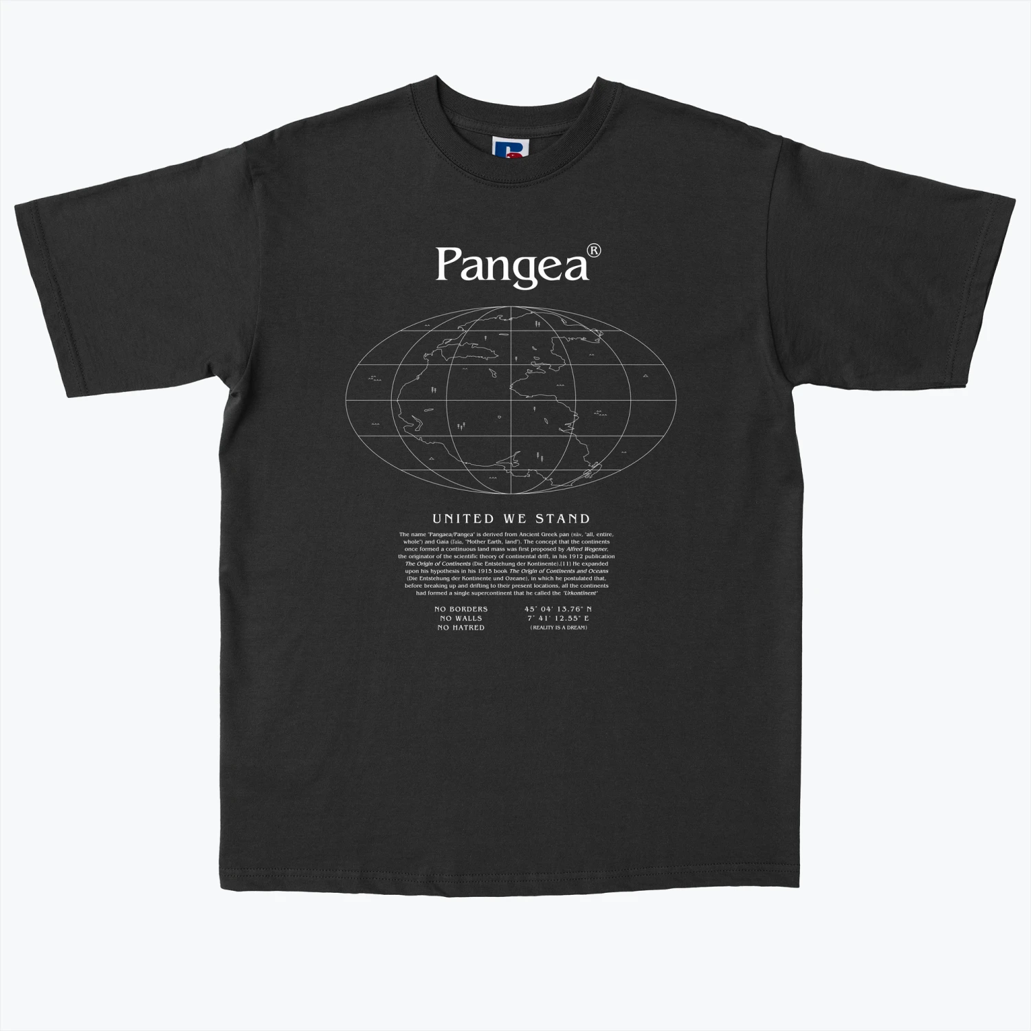PANGEA – United we stand /// Divided we fall – no borders, no walls, no hatred – Reality is a dream (designed by someone on Planet Earth)Cut to a relaxed fit, the J215M T-Shirt is made from super heavyweight 100% cotton and is WRAP and Oeko-Tex accredited.